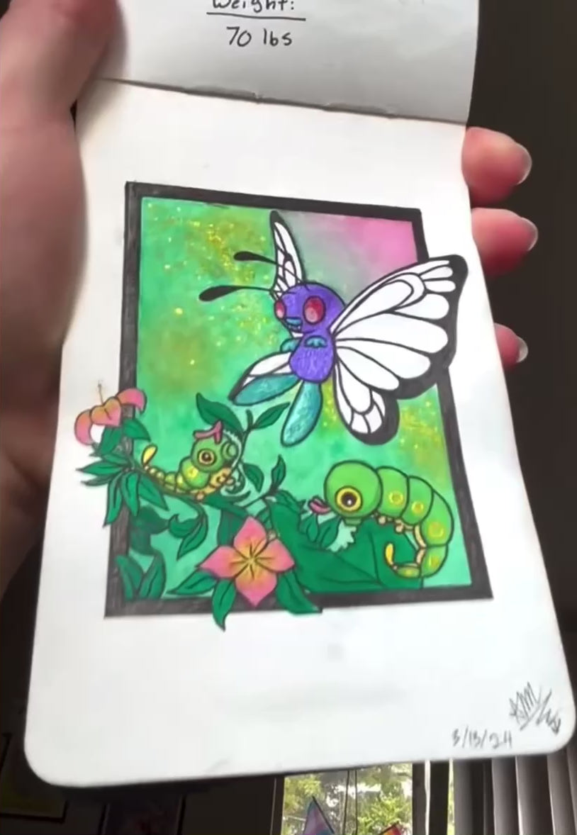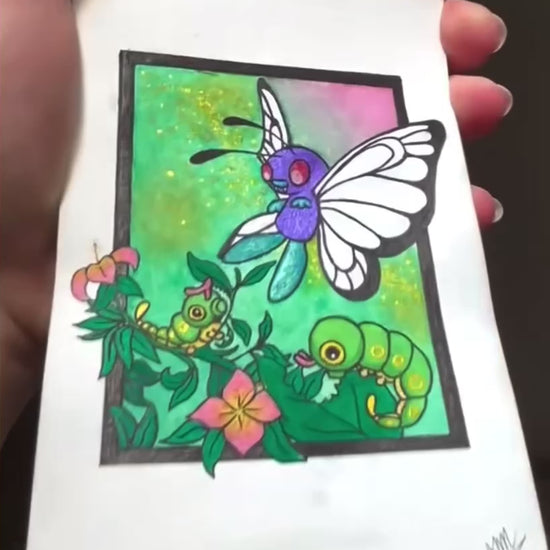 Butterfree and Caterpie Pokemon original watercolor art waterproof sticker