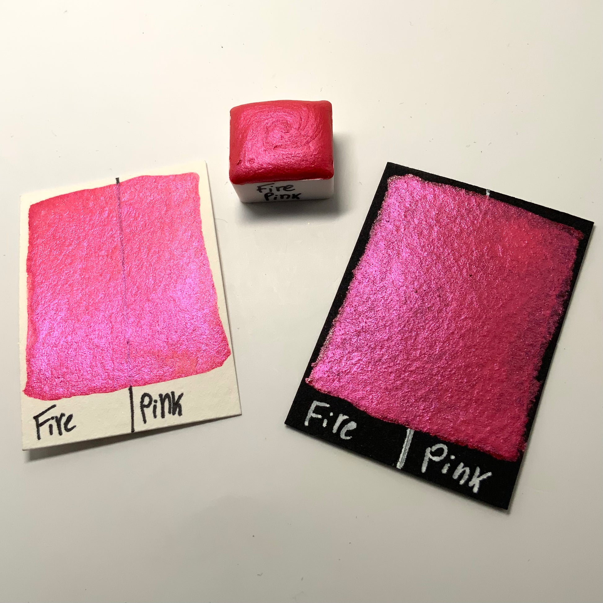 Fire Pink is a bright hot coral pink with an even stronger flash of pure pink. This color is a pink powerhouse! It shares the same smooth and creamy texture as most of our other pearlescent colors.