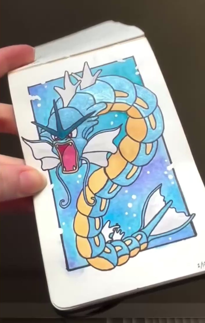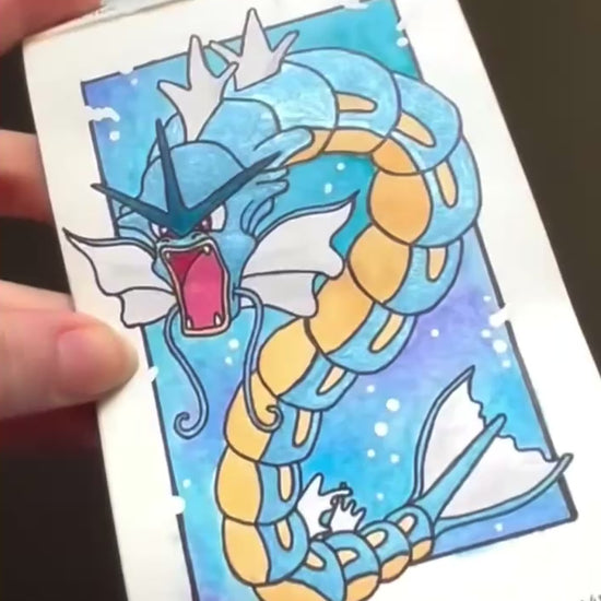 Glossy waterproof sticker of original watercolor painting of Gyarados.
