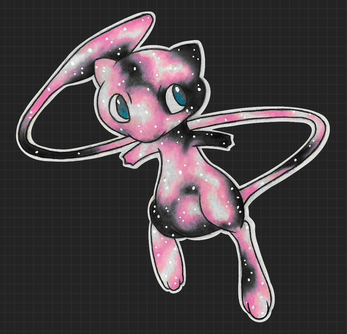 Mew Pokemon original colored pencil art waterproof sticker