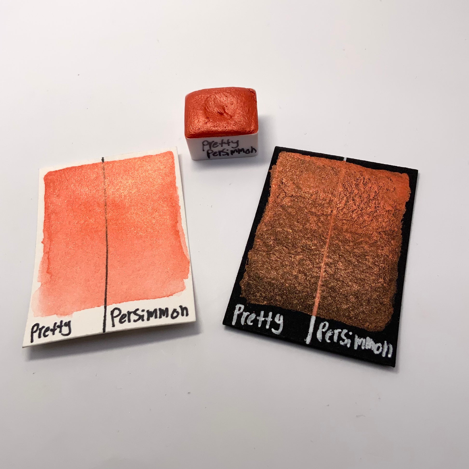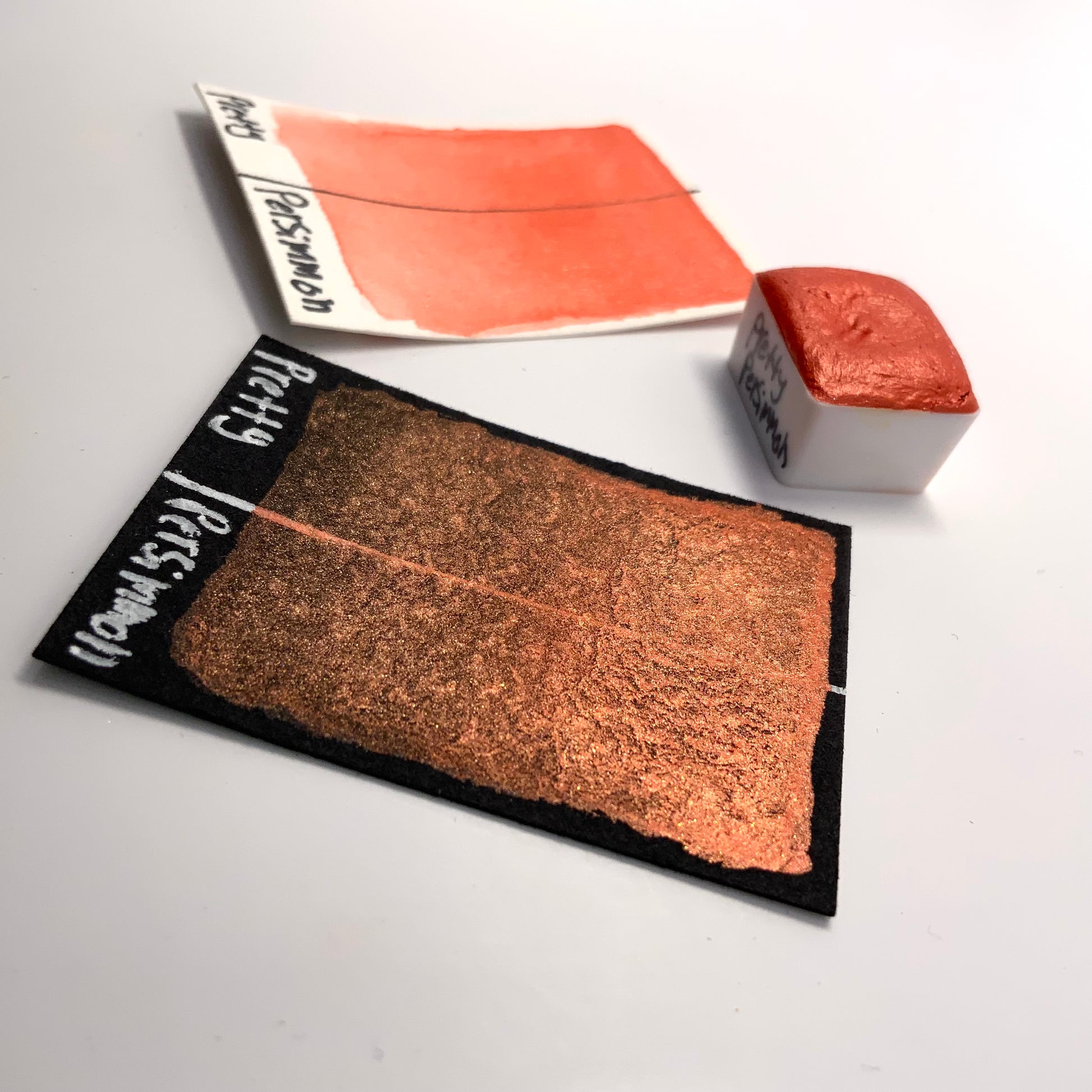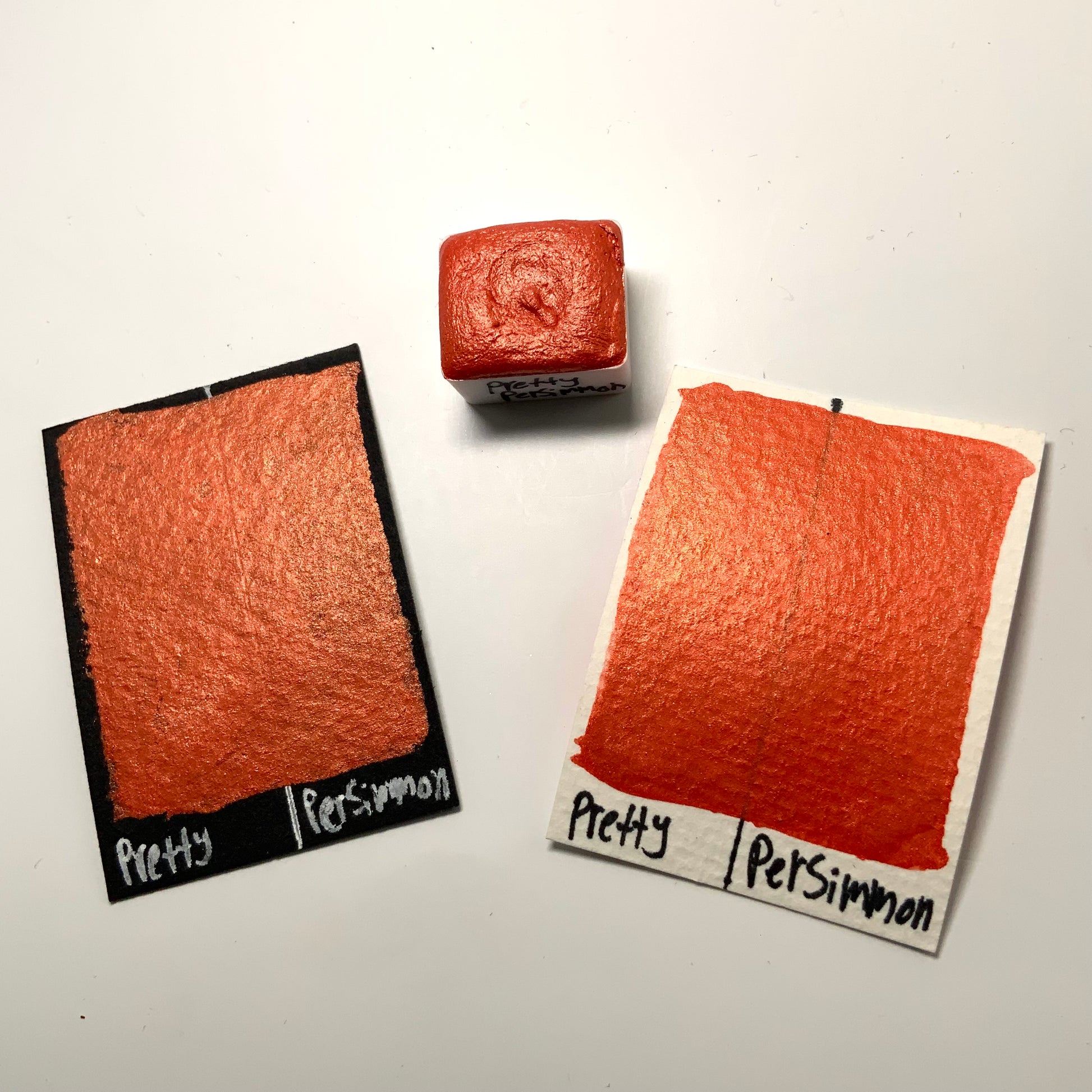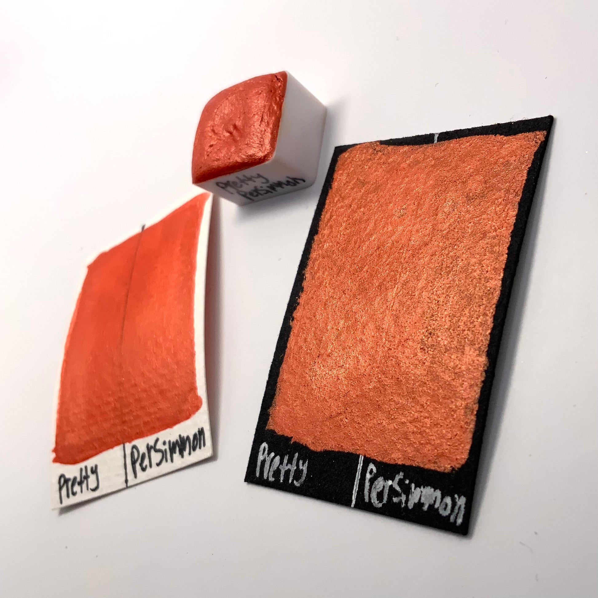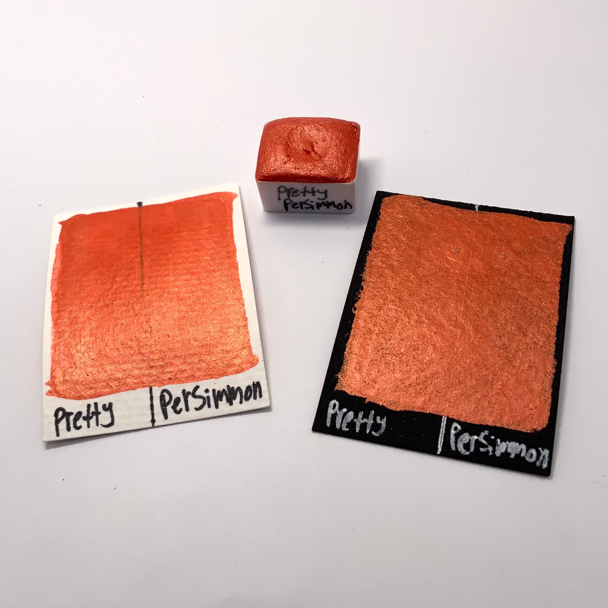 Pretty Persimmon is a vibrant burnt orange color with a similar colored reflection. It shares the smooth and creamy texture that our other pearlescent colors have.