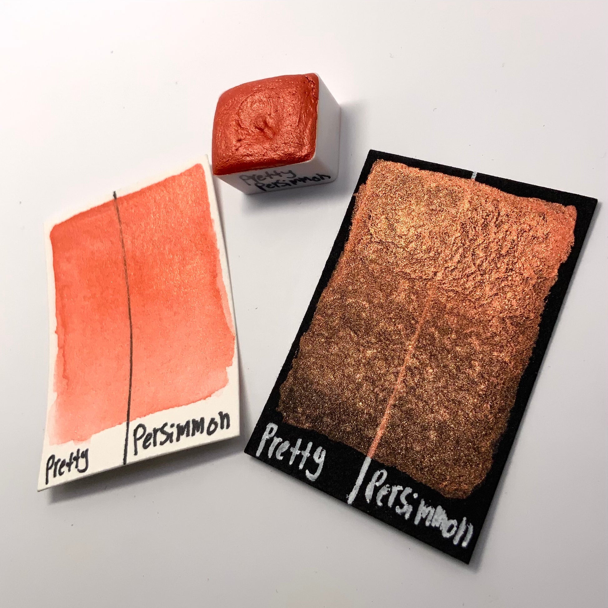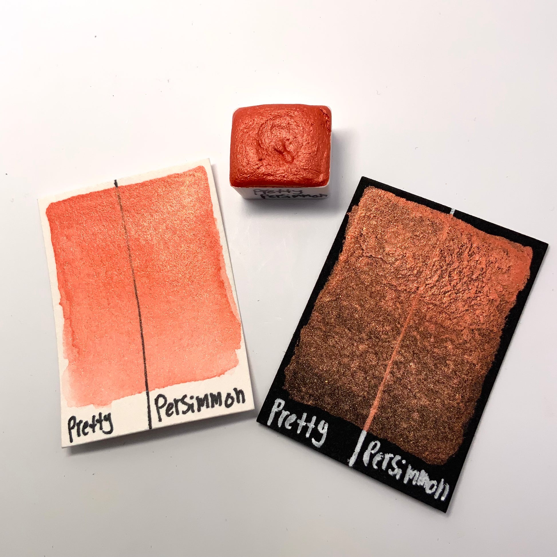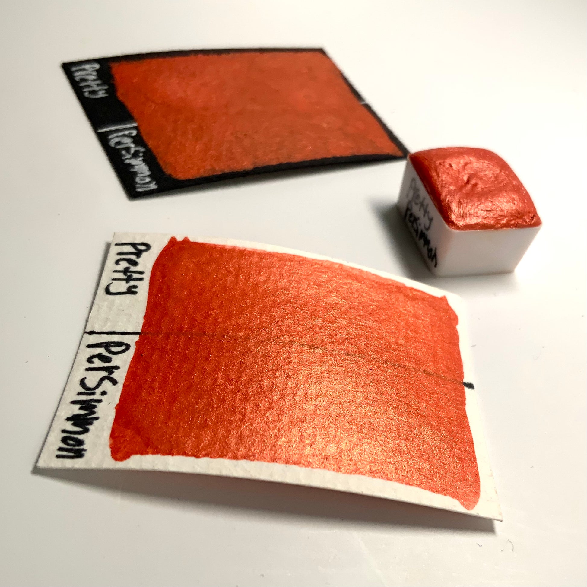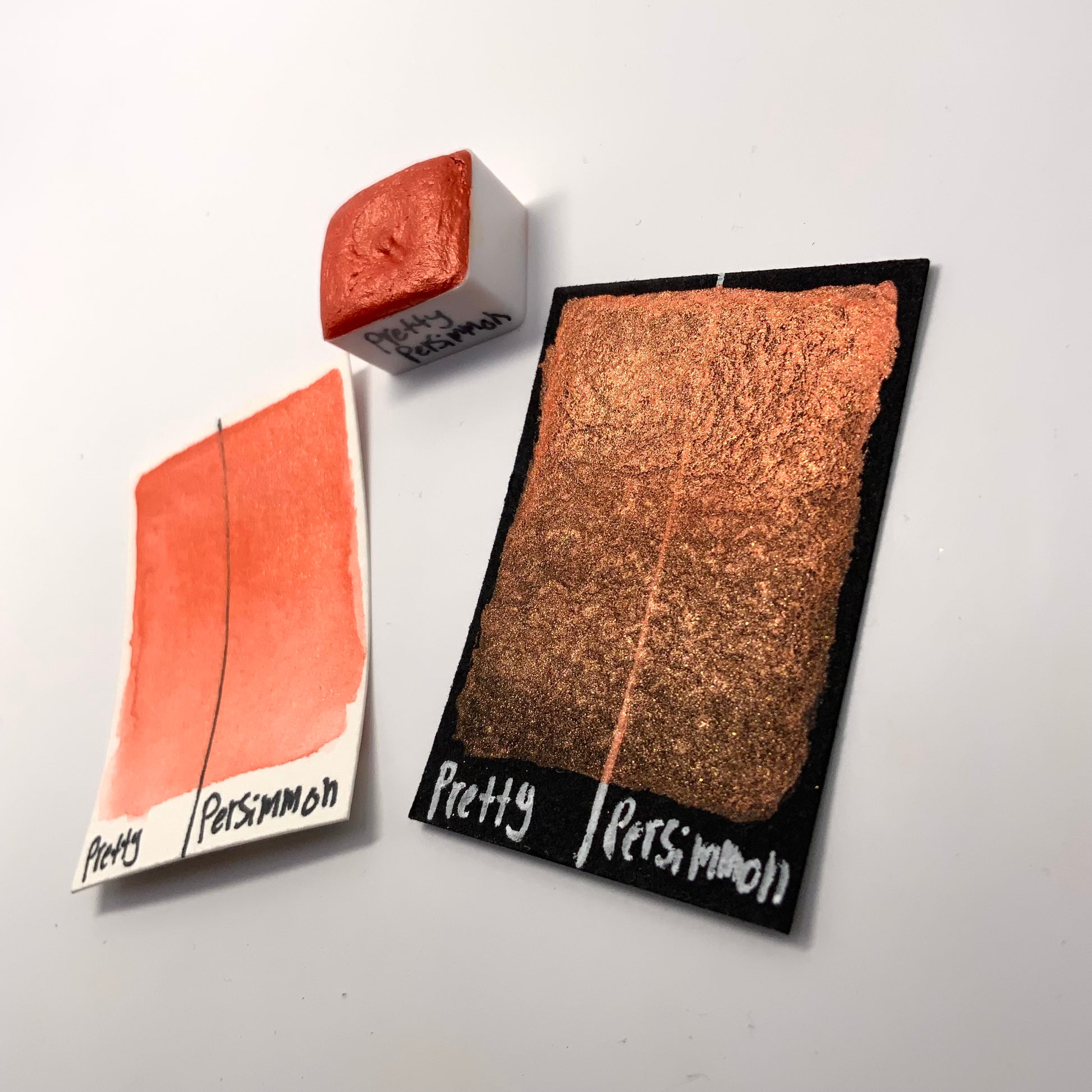 Pretty Persimmon is a vibrant burnt orange color with a similar colored reflection. It shares the smooth and creamy texture that our other pearlescent colors have.