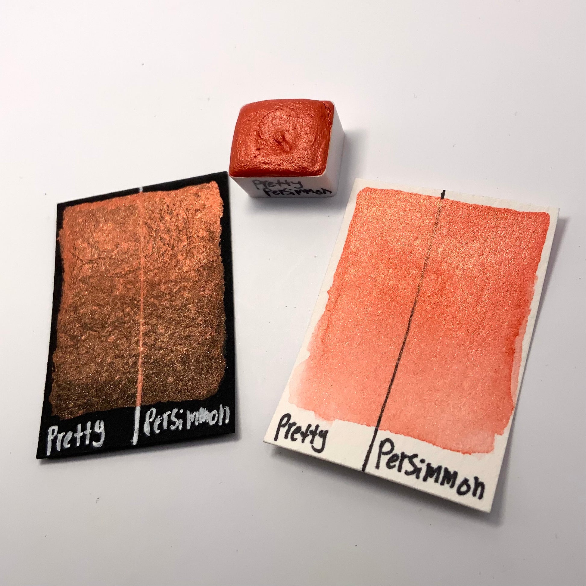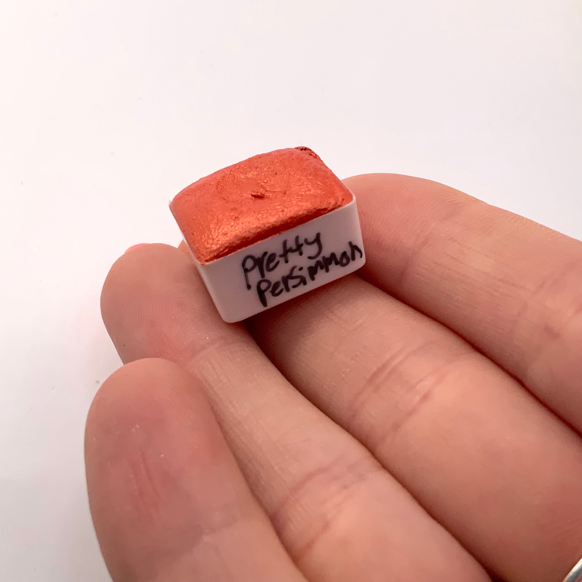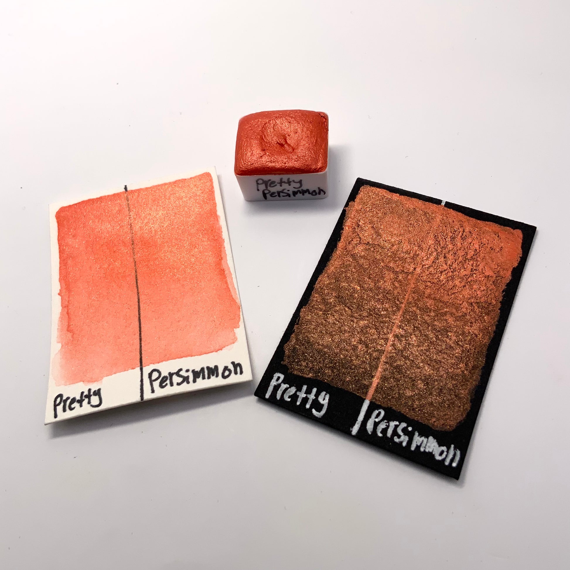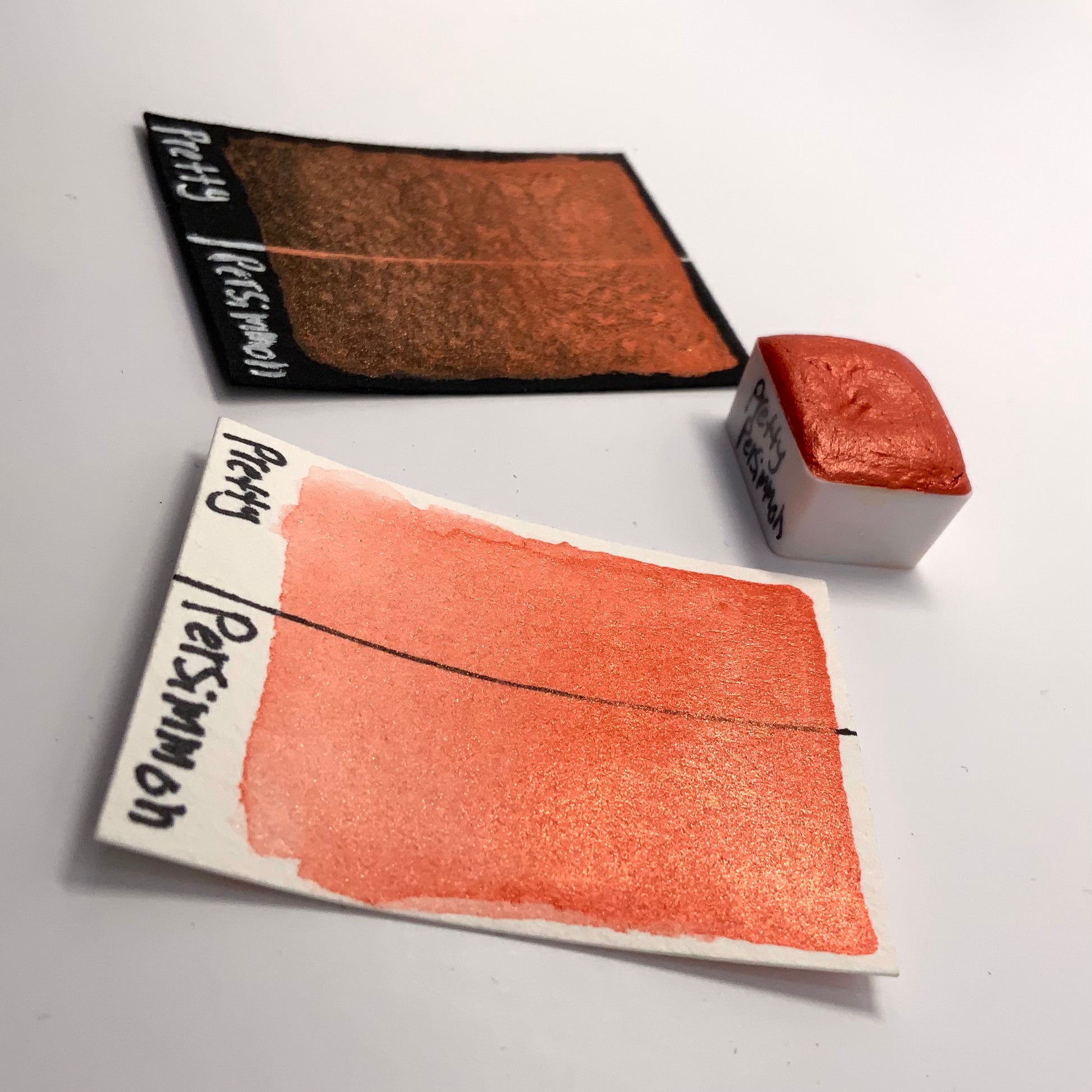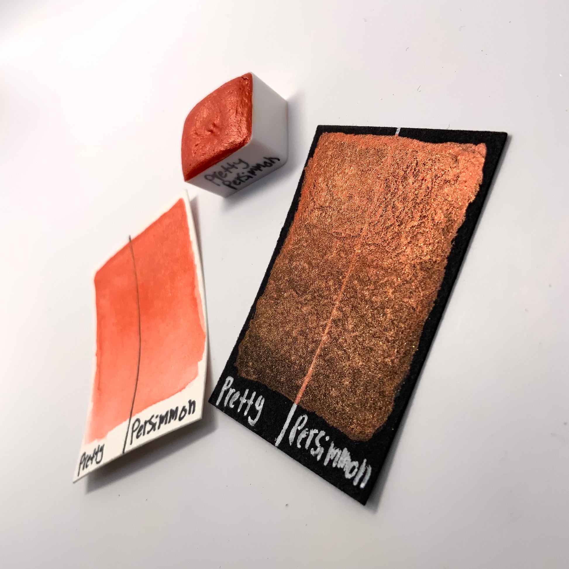Pretty Persimmon is a vibrant burnt orange color with a similar colored reflection. It shares the smooth and creamy texture that our other pearlescent colors have.